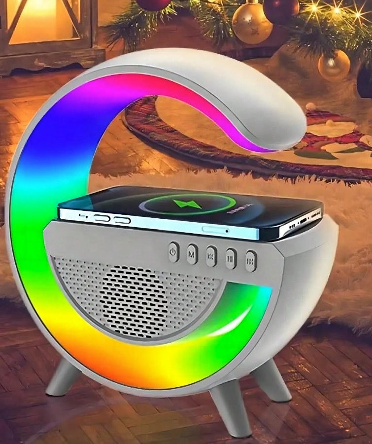 This wireless Bluetooth speaker combines superior sound quality with the convenience of wireless charging, allowing you to effortlessly charge compatible devices. It features LED color lighting that can be customized to suit your mood or setting, alongside a clear time display for easy reference. Designed for both functionality and style, this device integrates seamlessly into home or office environments, delivering a smart, multifunctional audio solution.